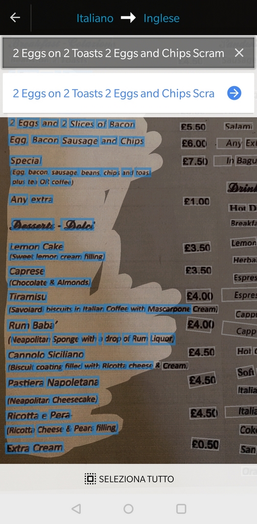 Questa funzione, a nostro avviso, è una delle più utili dell’applicazione. Ad esempio ci sarebbe servita non poco ad Atene dove le scritte in greco in giro per la città ci hanno reso la vita abbastanza difficile.
